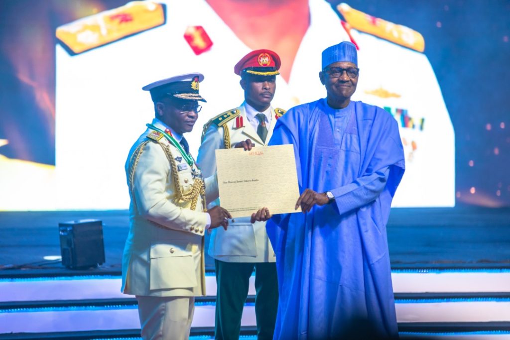 CONFERMENT OF NATIONAL HONOURS AWARD BY MR PRESIDENT MUHAMMADU BUHARI ON THE CHIEF OF THE NAVAL STAFF (CNS) VICE ADMIRAL