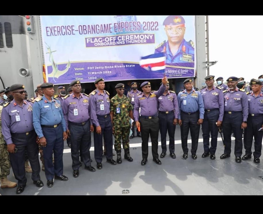 THE CHIEF OF THE NAVAL STAFF, VICE ADMIRAL AWWAL ZUBAIRU GAMBO CFR FLAGGED OFF EXERCISE OBANGAME EXPRESS 2023 ONBOARD NIGERIAN NAVY SHIP KADA ON FRIDAY 27 JANUARY 2023.